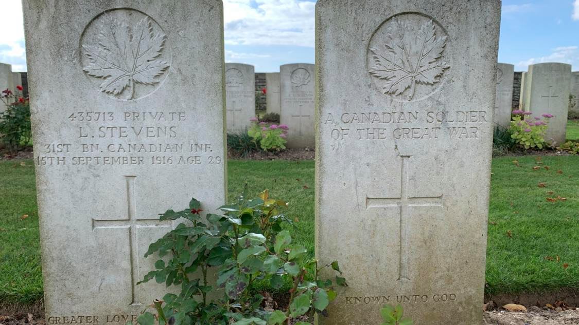 Courcelette is a village some 10 kilometres north-east of the town of Albert, just off the D929 road to Bapaume. The Courcelette British Cemetery is approximately 1 kilometre west of the village on the south side of a track, suitable for cars, from the secondary road from Courcelette to Pozieres. The route is signposted in the village.