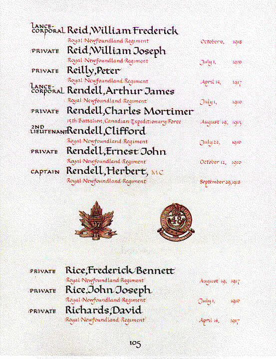Page 105 of the Newfoundland Book of Remembrance.