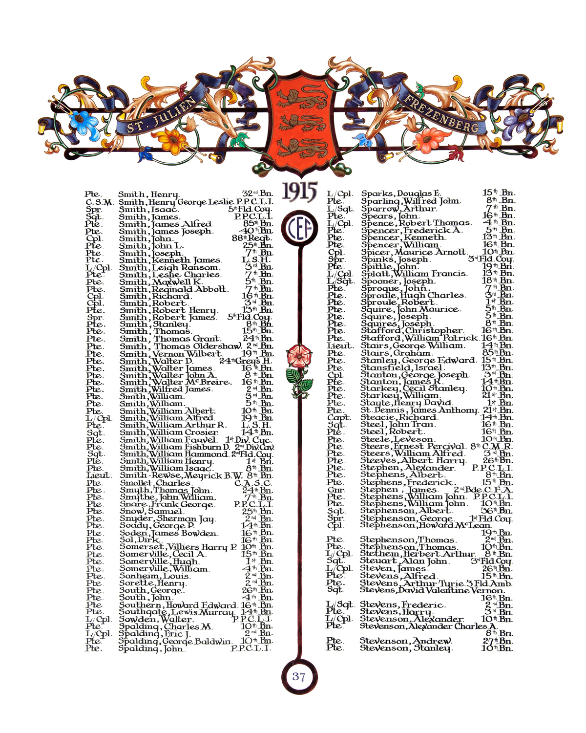 Page 37 of the First World War Book of Remembrance.