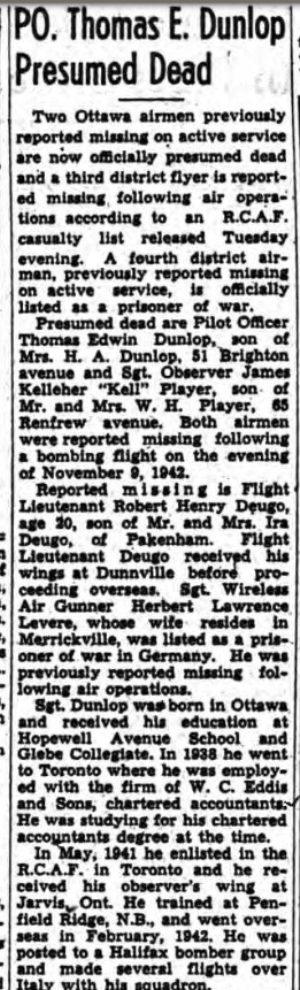 Digital gallery of Pilot Officer Thomas Edwin Dunlop