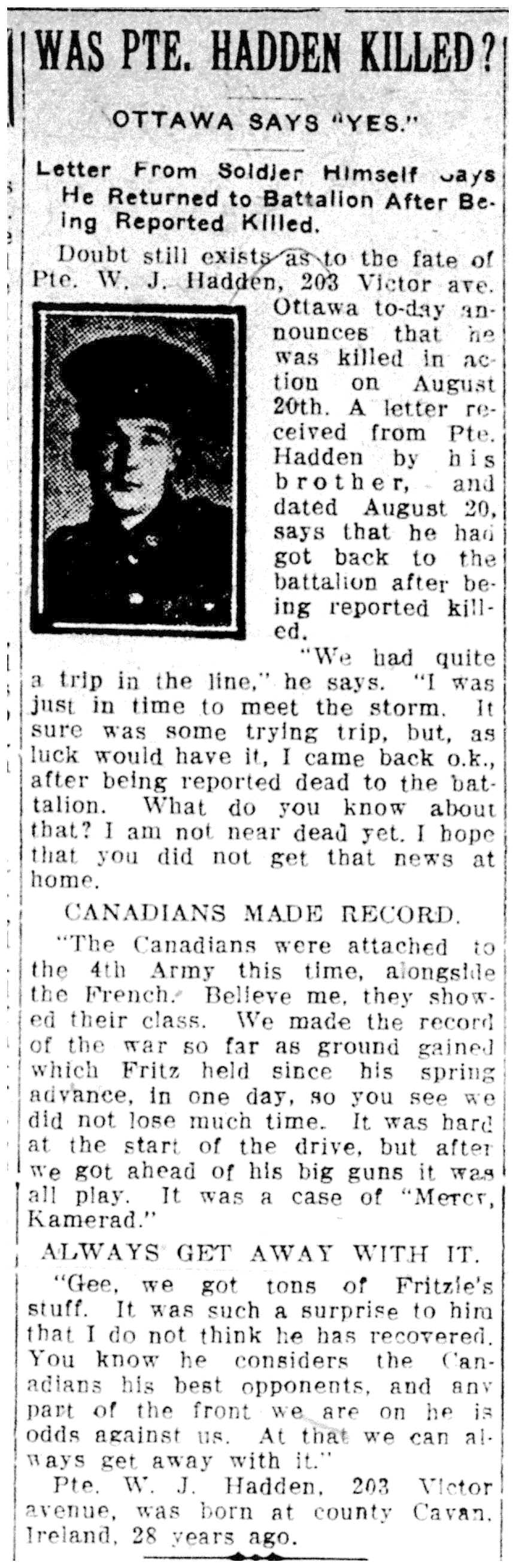 Digital gallery of Private William James Hadden