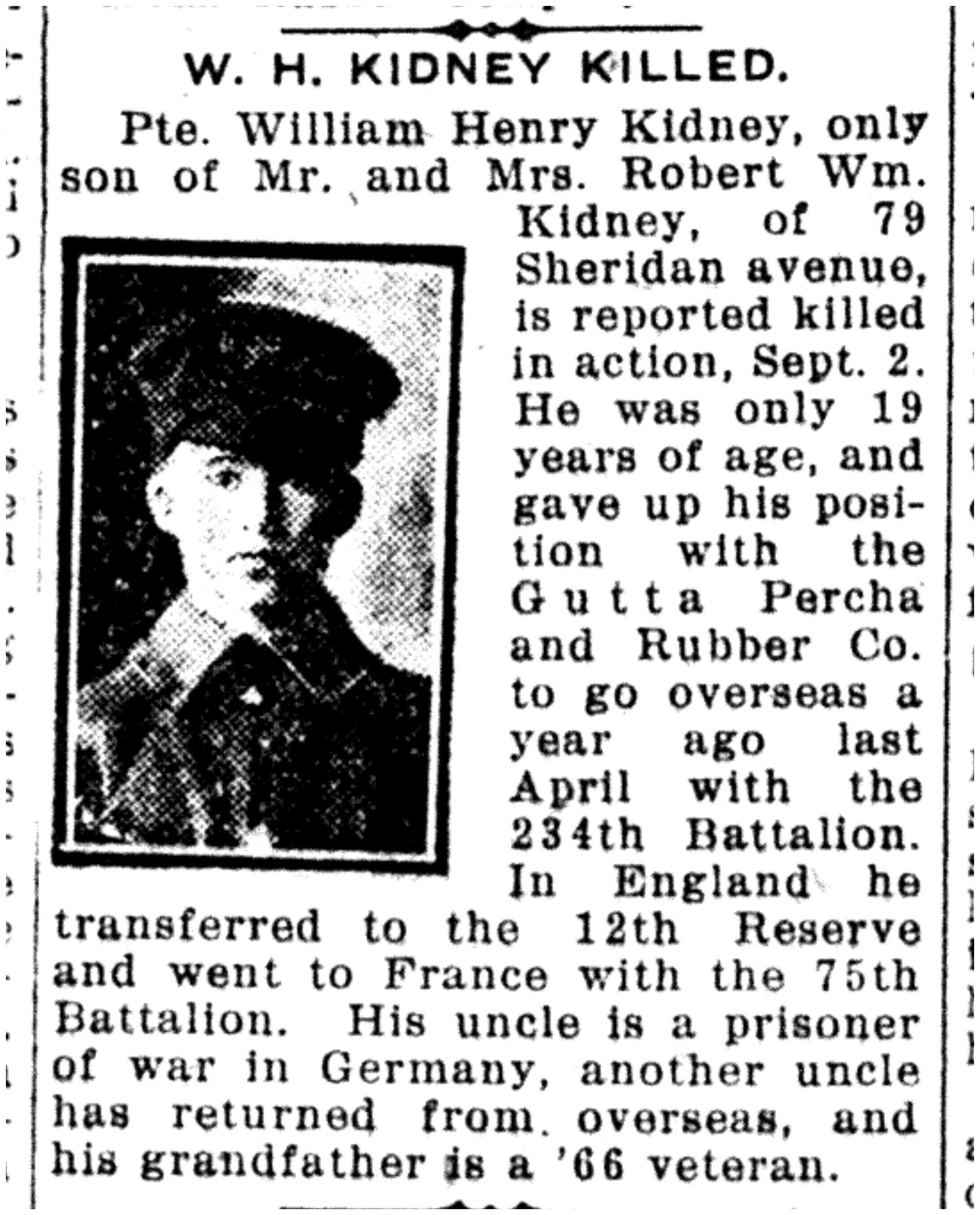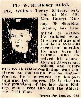 Son of Mr. and Mrs. R. W. Kidney, of 79, Sheridan Avenue, Toronto.