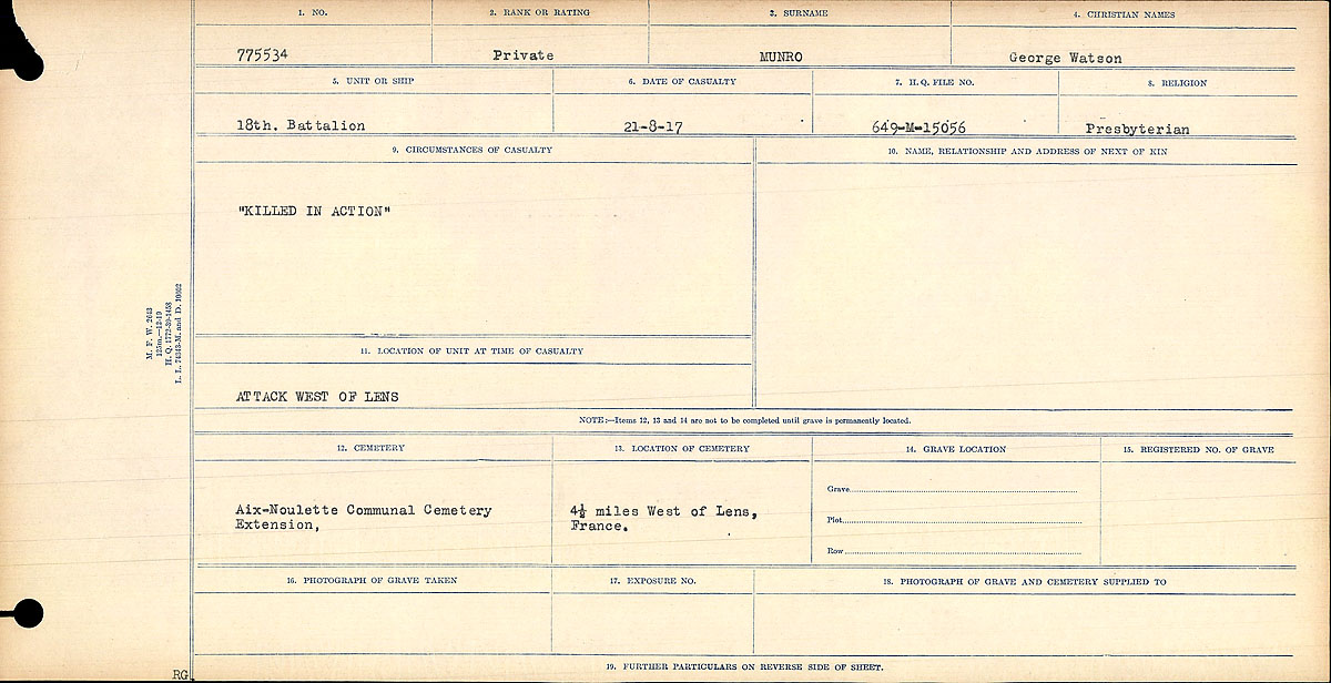 Digital gallery of Private George Watson Munro