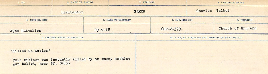 Son of the Rev. W. R. and Mrs. Baker, of East Hagbourne, Didcot, Berks., England; husband of Dora Mary Baker, of Upper Cottage, Maresfield, Sussex, England.