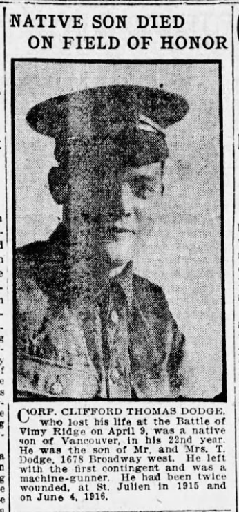 Son of Thomas and Annie Dodge, of Vancouver, British Columbia.