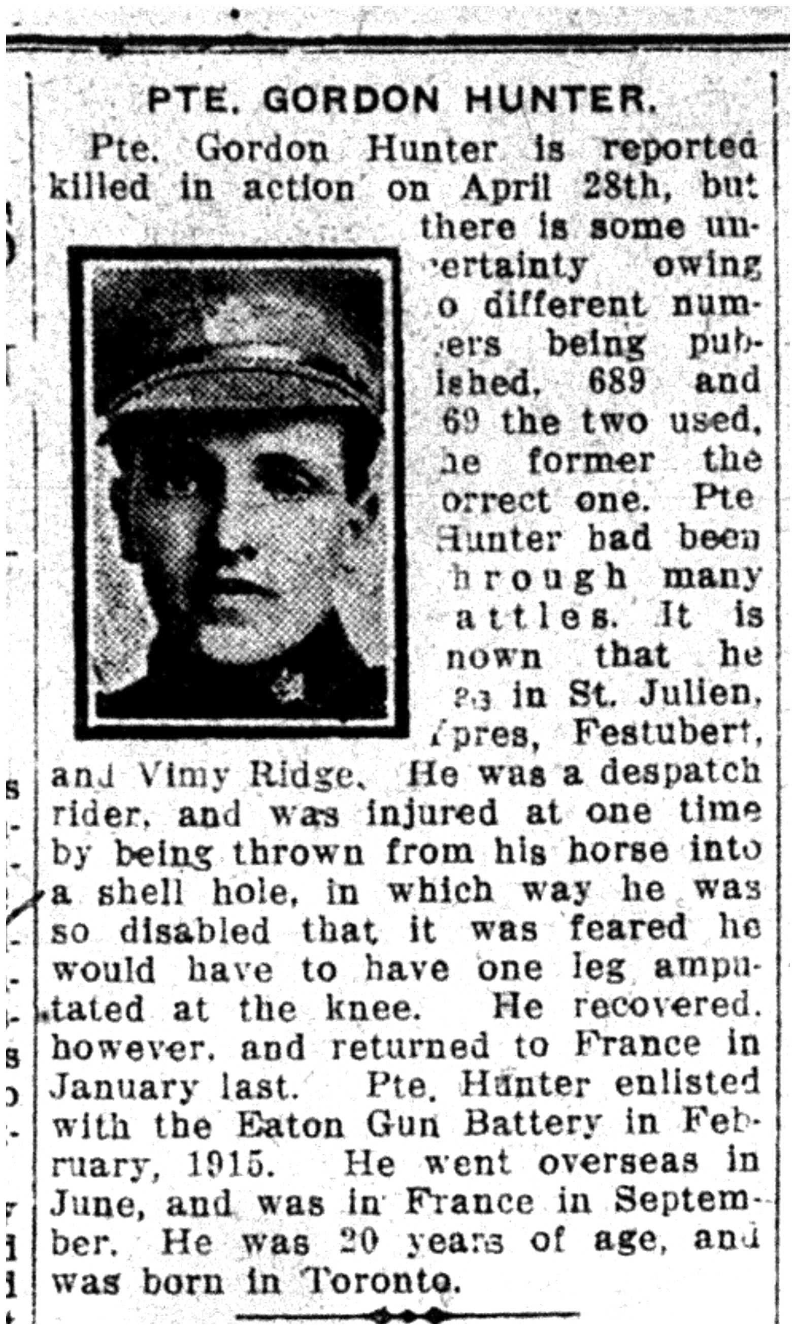 Eaton's Son of Mr. and Mrs. James Hunter, of 14, Scallard St., Toronto, Ontario.