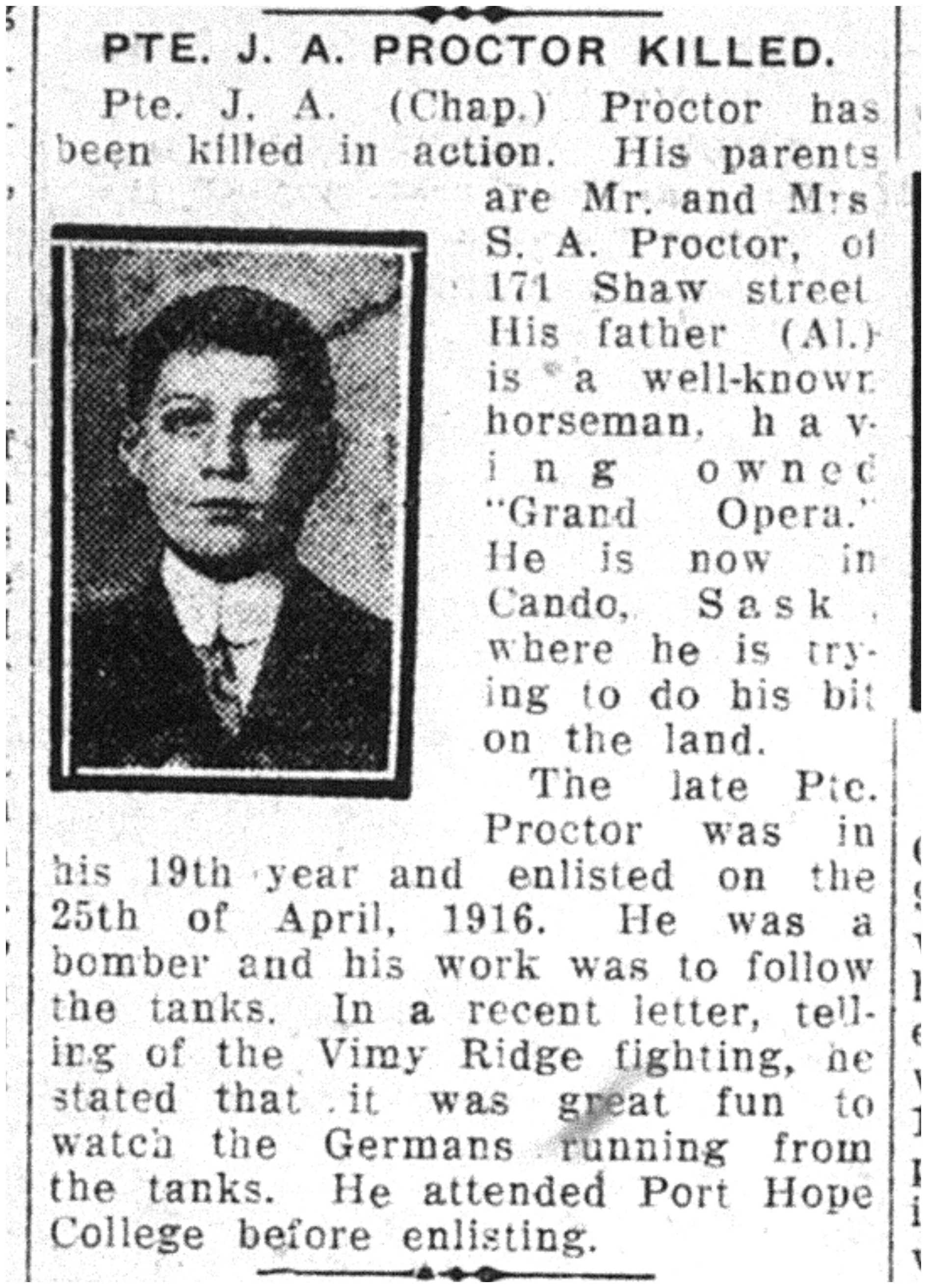 Son of Simon A. Proctor of Toronto, Ontario.