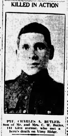 Son of Mr. and Mrs. Charles William Butler, of 141, Glen Avenue, Ottawa, Ontario.