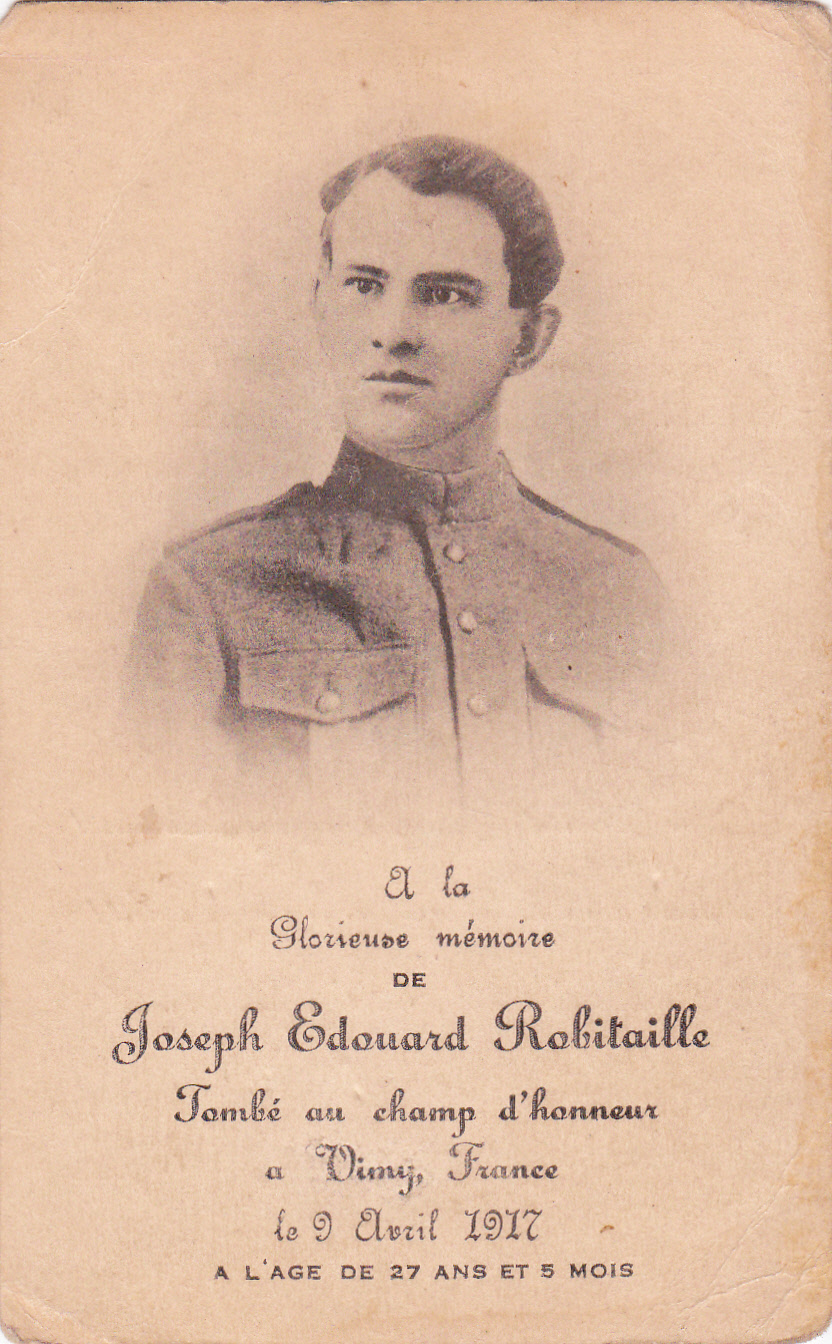 Baptized Joseph-Édouard-Antonio Robitaille. Son of François-Xavier « Francis » Robitaille and Célina Bilodeau, of Lauzon, Lévis, Québec.