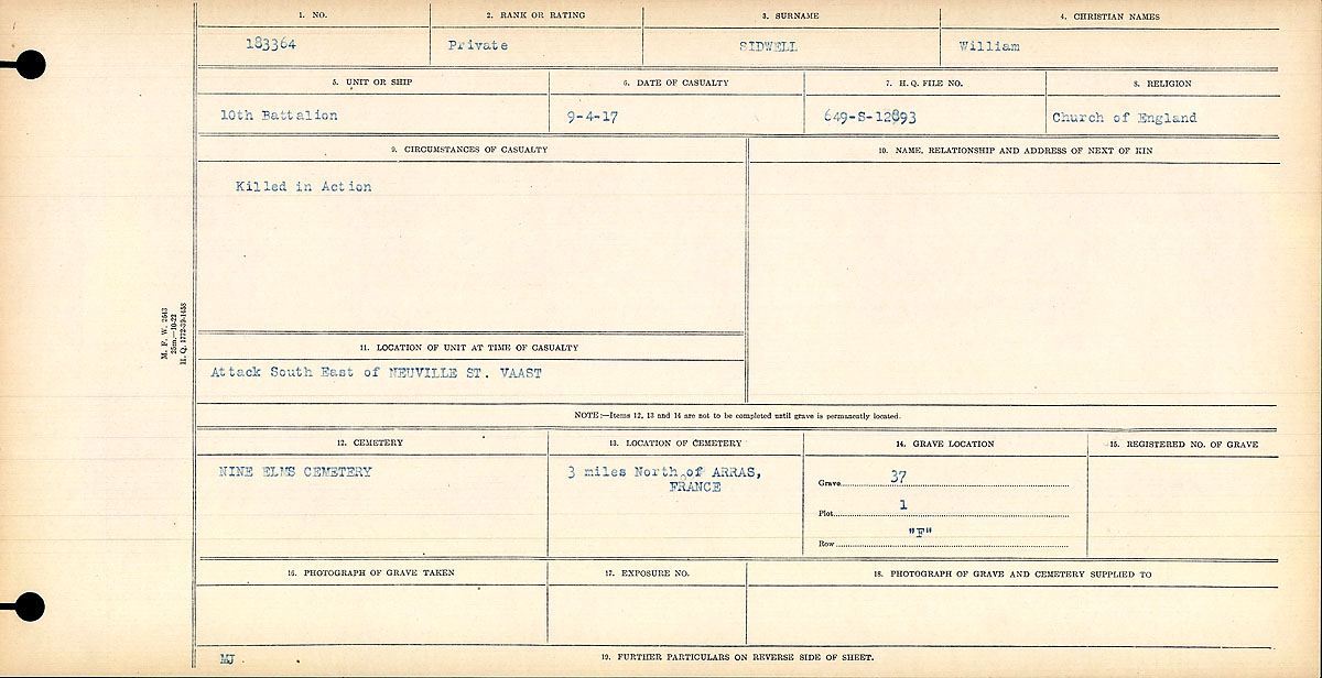 NINE ELMS MILITARY CEMETERY (France) Pas de Calais, France