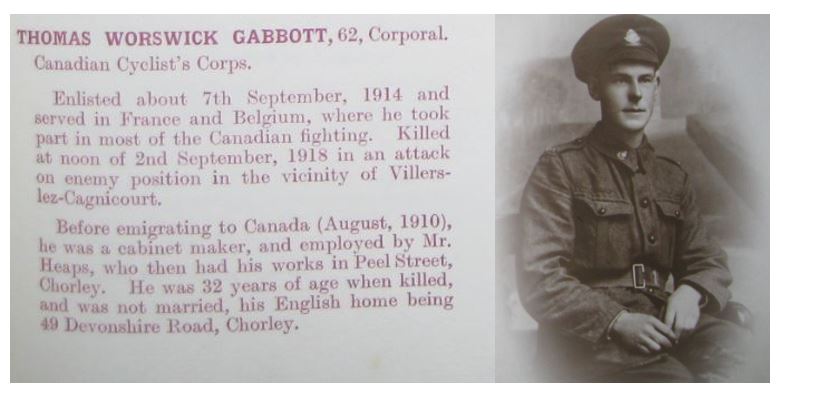 Son of Lawrence and Sarah Gabbott, of 49, Devonshire Rd., Chorley, Lancs., England.