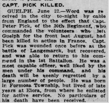 Son of Richard and Isabella Pick, of Nichol, Ontario.