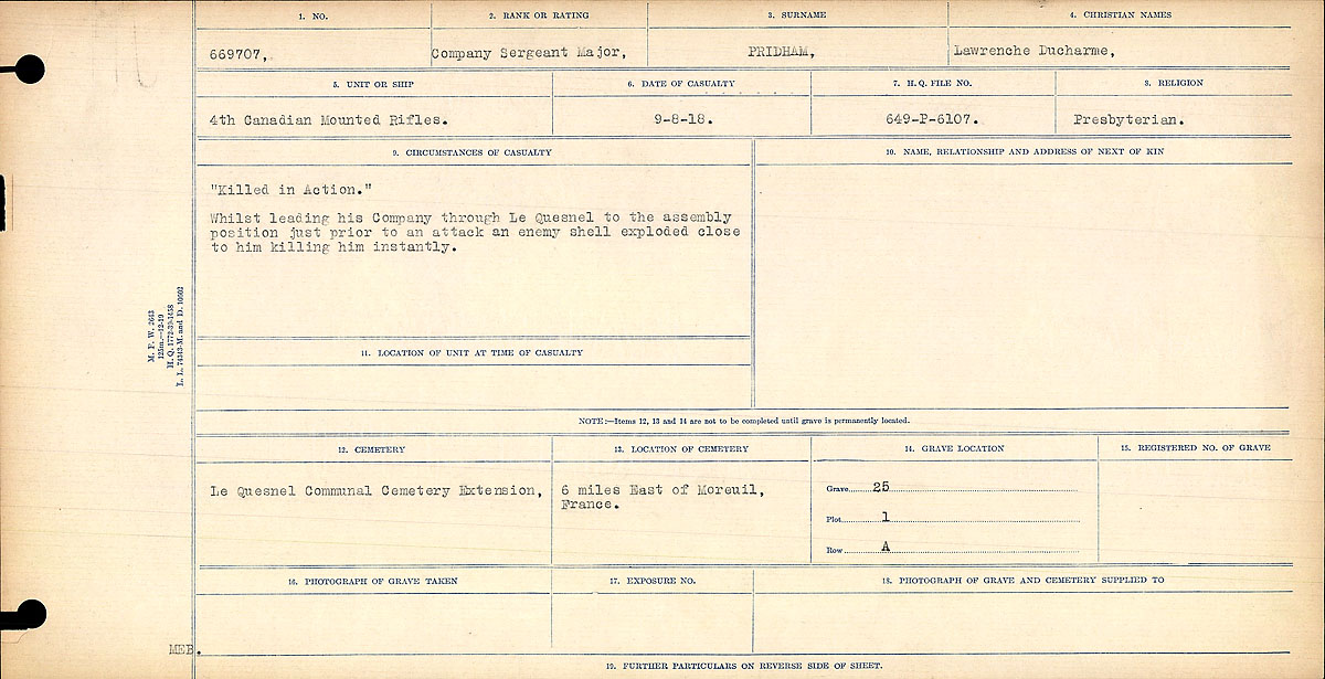 Digital gallery of Company Sergeant Major Lawrence Ducharme Pridham