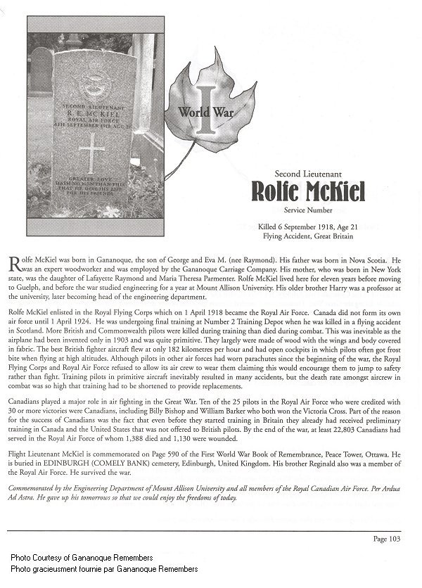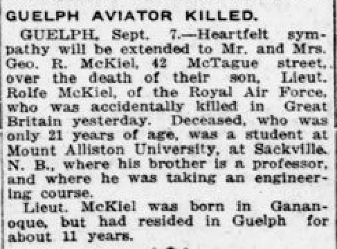 Son of George R. and Eva M. McKiel, of Guelph, Ontario.