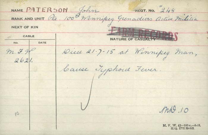During the First World War, Winnipeg was the headquarters of No 10 Military District and it contained six military hospitals of 972 beds. Air force and army training camps were established in the area during the Second World War, with No 103 Canadian Army Basic Training Centre at Fort Garry. Winnipeg (Brookside) Cemetery contains 299 Commonwealth burials of the First World War and 149 from the Second World War, most of them in the special military plot.