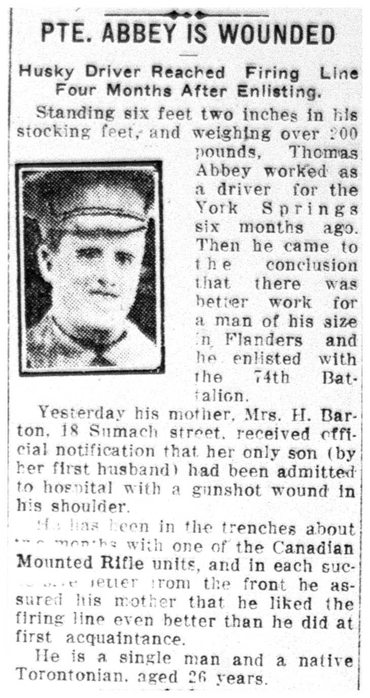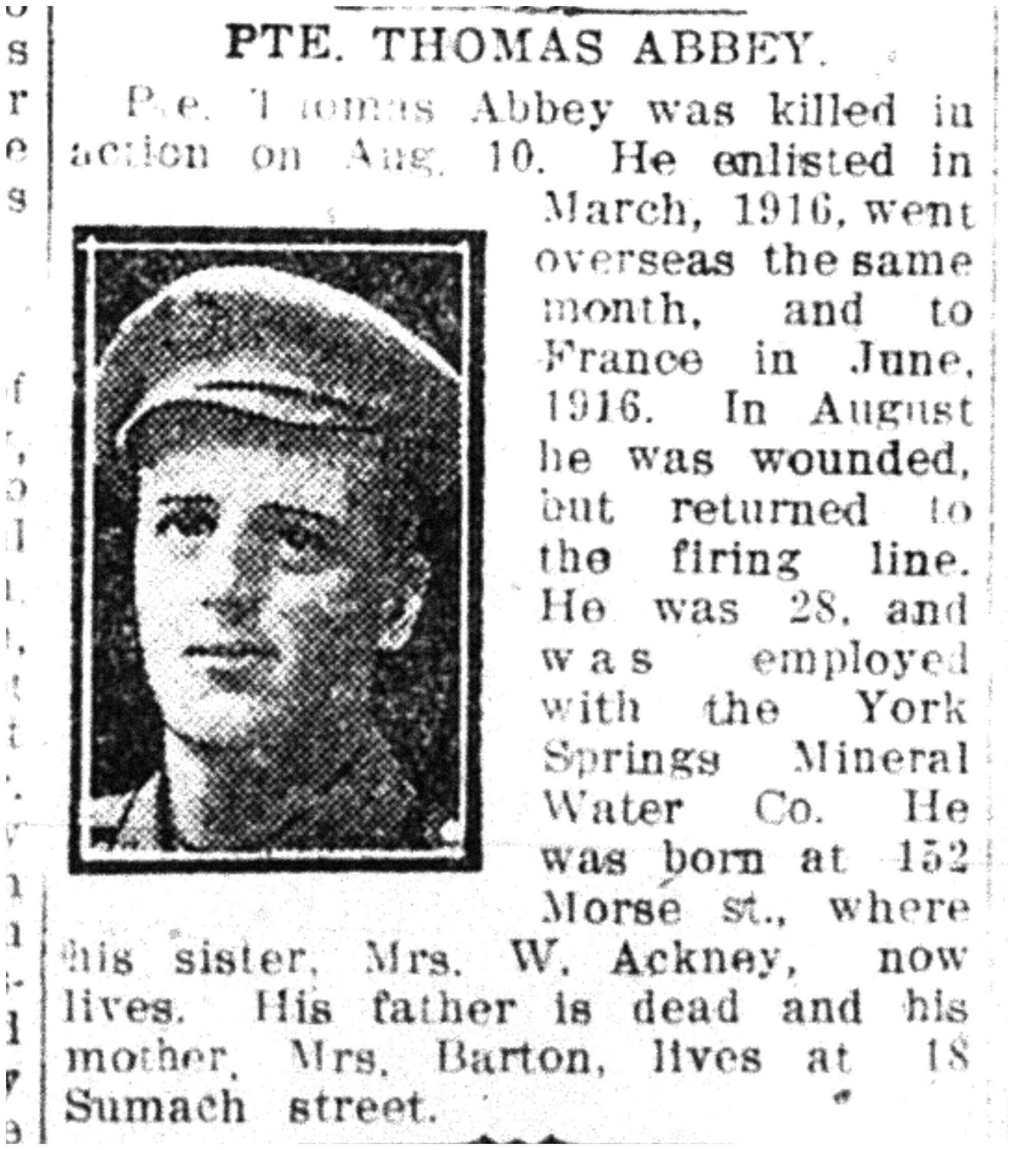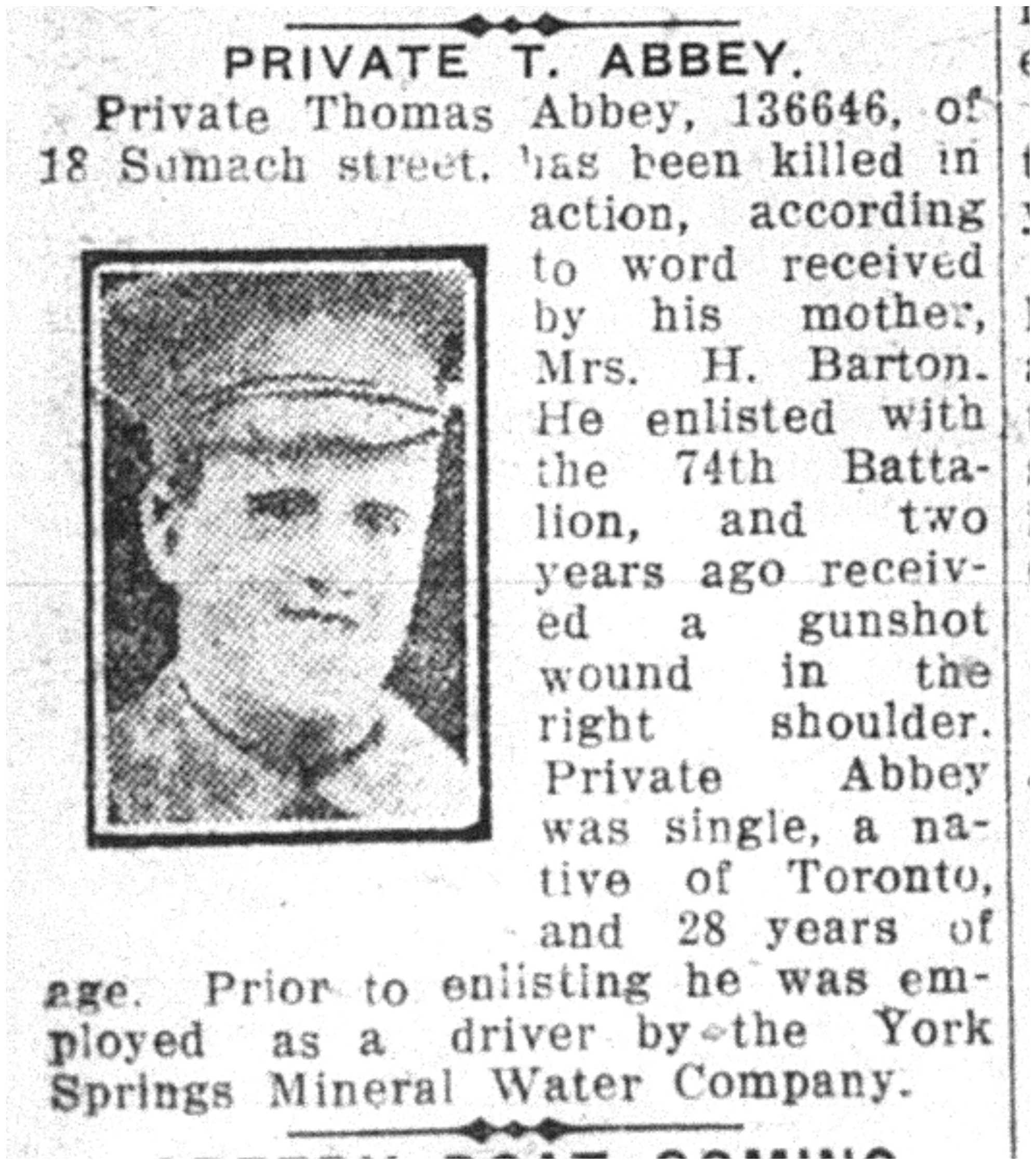Son of Thomas Abbey and Ruth Barton (formerly Abbey), of Toronto, Ontario.