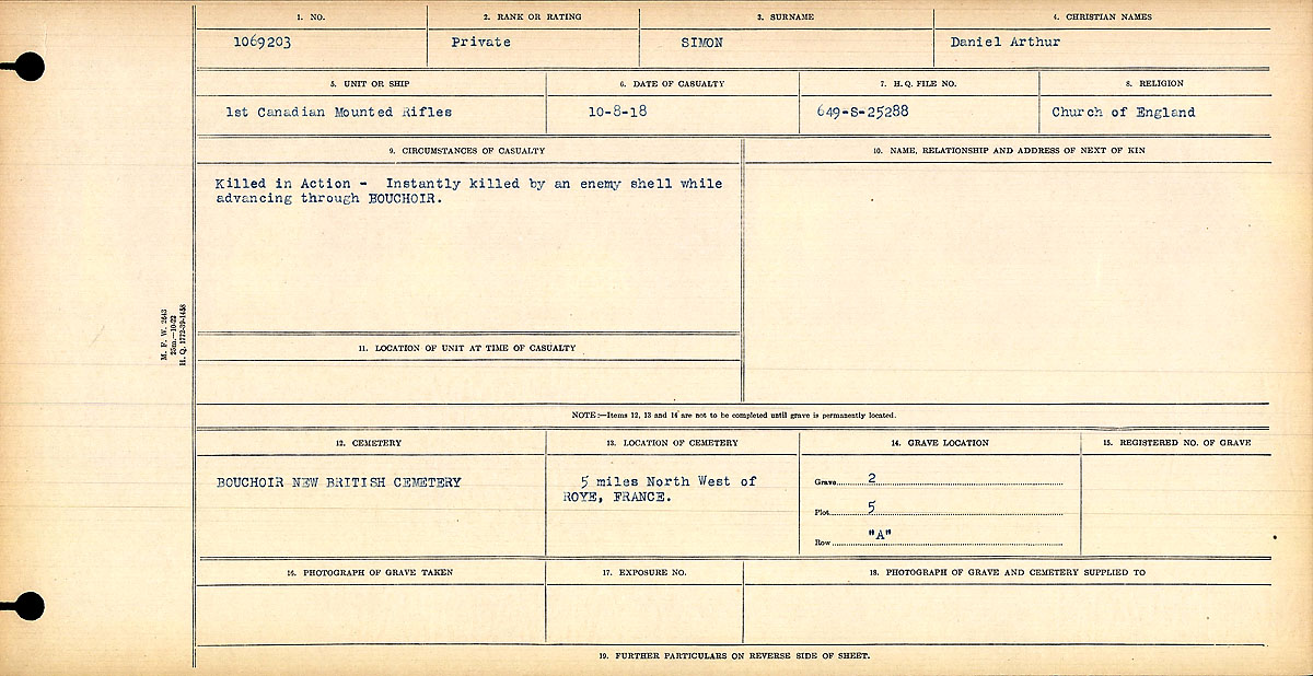 Unit/Regiment: 1st Canadian Mounted Rifles (Saskatchewan Regt.)