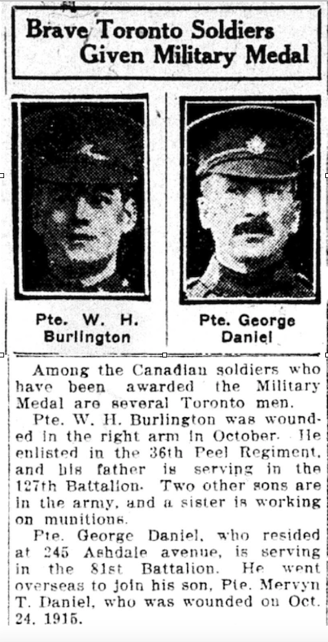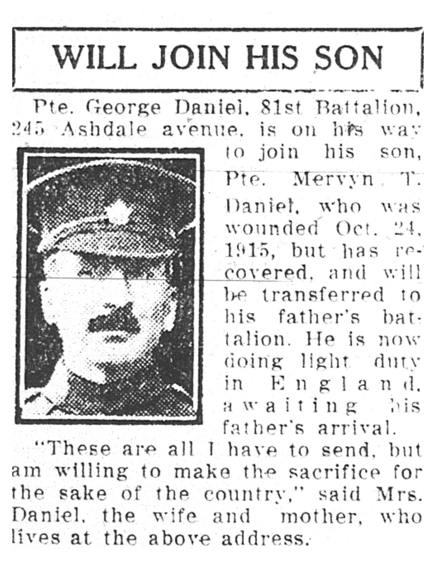 Son of the late Henry and Jane Daniel, of Millarton, Bruce Co., Ont.; husband of Annie F. Daniel, of 245, Ashdale Avenue, Toronto, Ont.