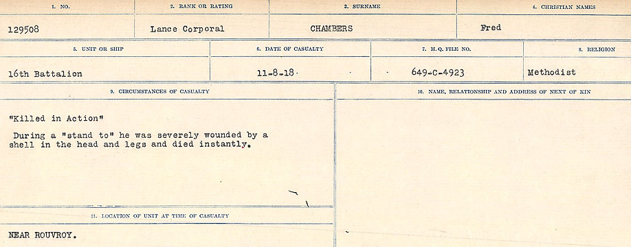 Son of Charles and Hannah Chambers, of South Vancouver, British Columbia.