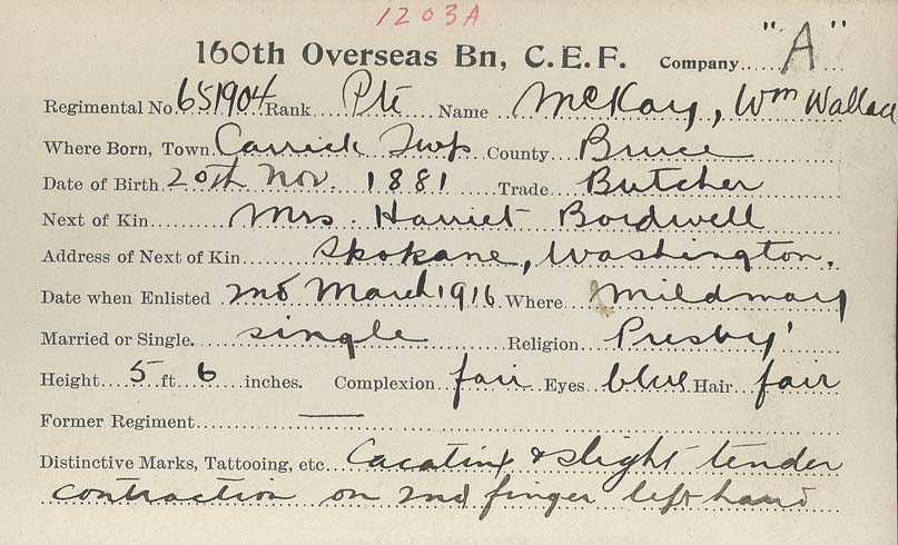 Only son of Benjamin and Christiana Yeats McKay, of Walkerton, Ontario.