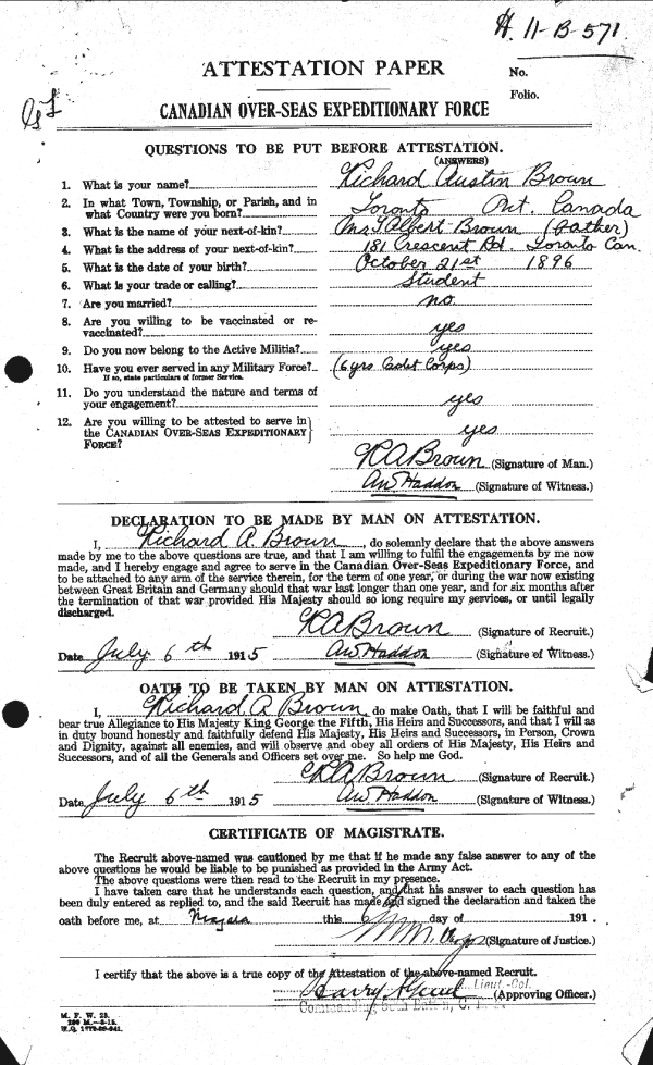 Enlistment: July 6, 1915 Ontario