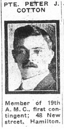 Son of Mr. T. Cotton, of 216, Glyn Rd., Clapton, London, England; husband of Annie E. McKenzie (formerly Cotton), of II, Cross St., Sandwich, Ont.