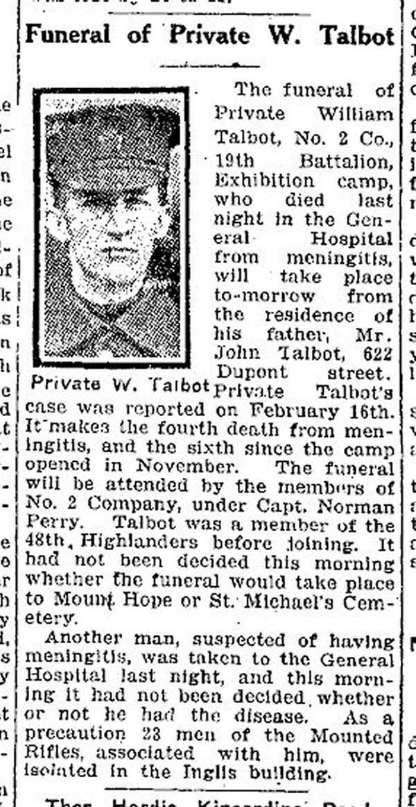 Son of John and Winifred Talbot, of 362, Parliament St., Toronto, Ont.