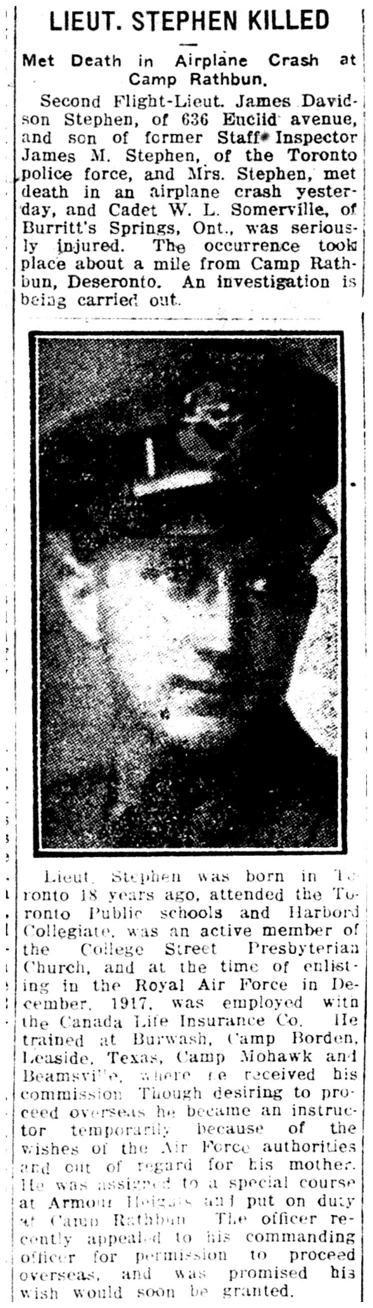 Son of James Milne Stephen and Margaret Helen Stephen, of Toronto, Ontario.
