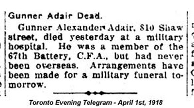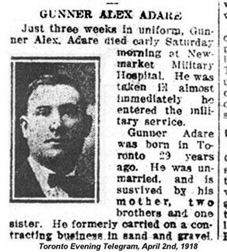 Son of William John and Elizabeth Adare, of 27 Roblock Avenue, Toronto, Ontario.