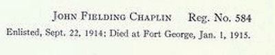 Brother of Surgeon Harold Garrett Chaplin who died on June 5, 1916, while serving with the Royal Navy.