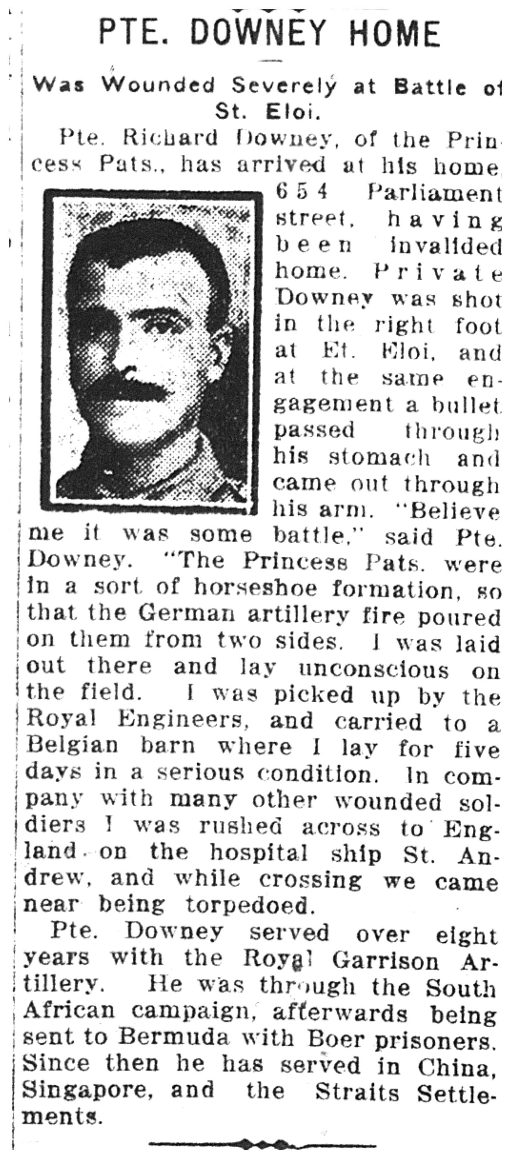 Son of Richard and Harriett Downey of Sudbury, Harrow, Middx., England. Husband of Agnes Downey, of 39, Pickering St., Toronto, Ontario.