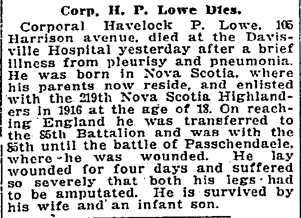 Son of Freeman and Sarah Lowe, of Lower Clarke Harbour, Shelbourne Co., Nova Scotia; husband of Jessie Lowe, of Toronto, Ontario.