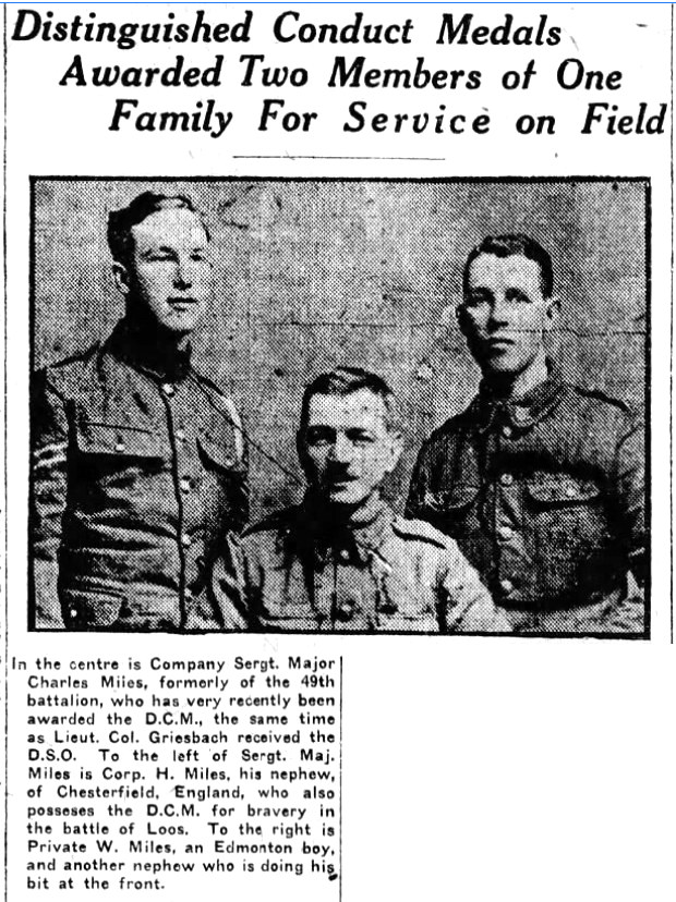 Son of George and Fanny Miles; husband of Mabel Miles, of Edmonton, Alberta. Born at Chesterfield.