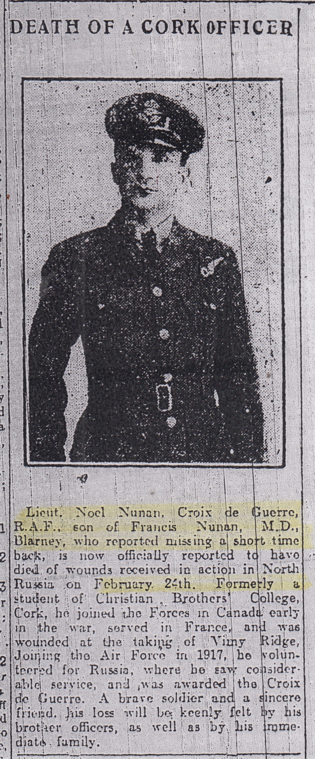 Digital gallery of Second Lieutenant Noel Daniel Nunan