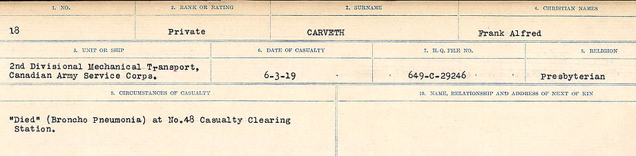 Digital gallery of Private Frank Alfred Carveth