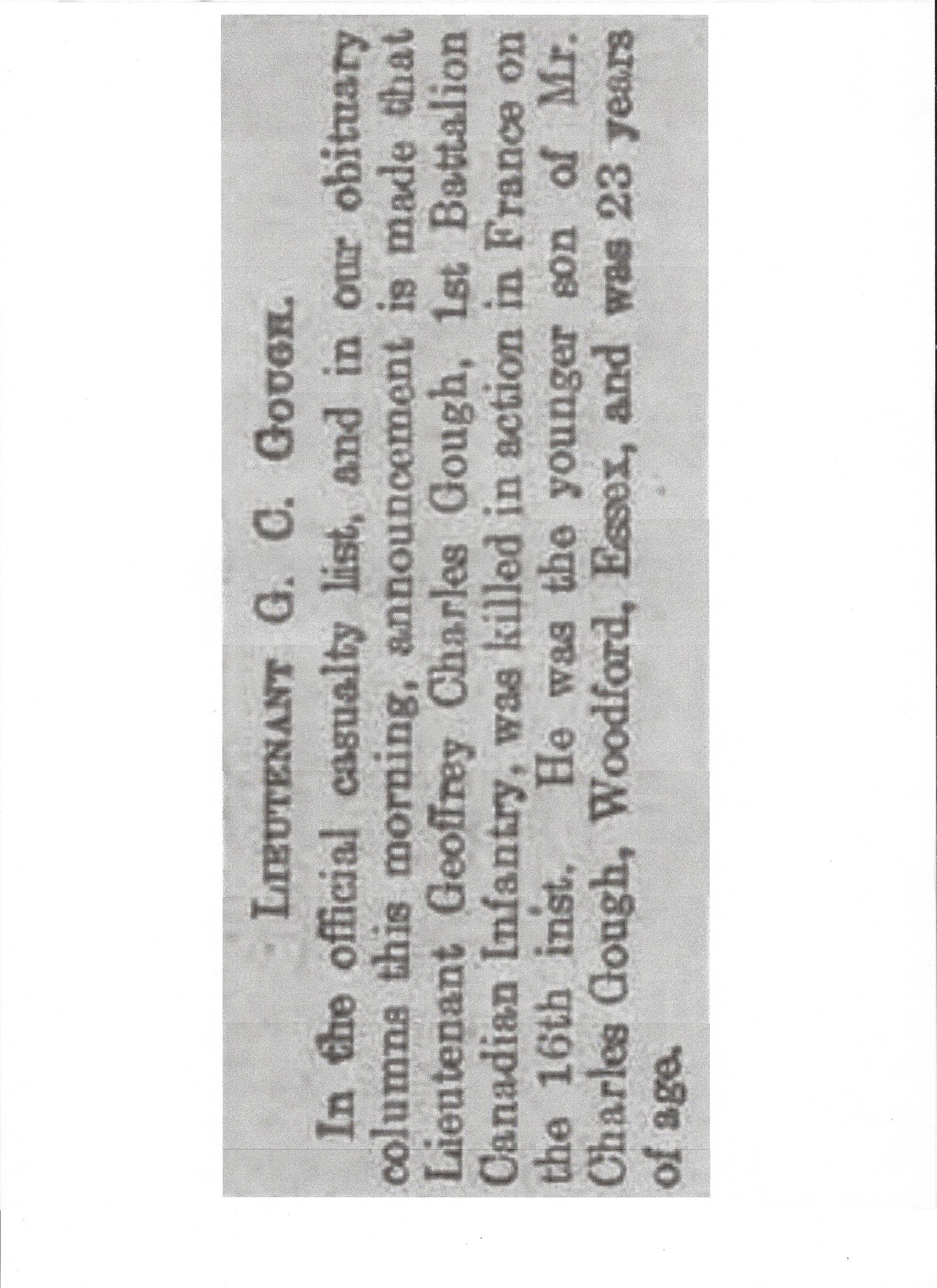 Son of Charles and Selina Gough, of "Holmwood", Grove Hill, Woodford, Essex.