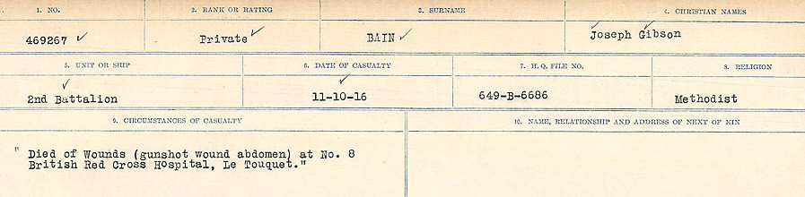 Son of Capt. Joseph and Mary Bain, of Yarmouth, Nova Scotia.