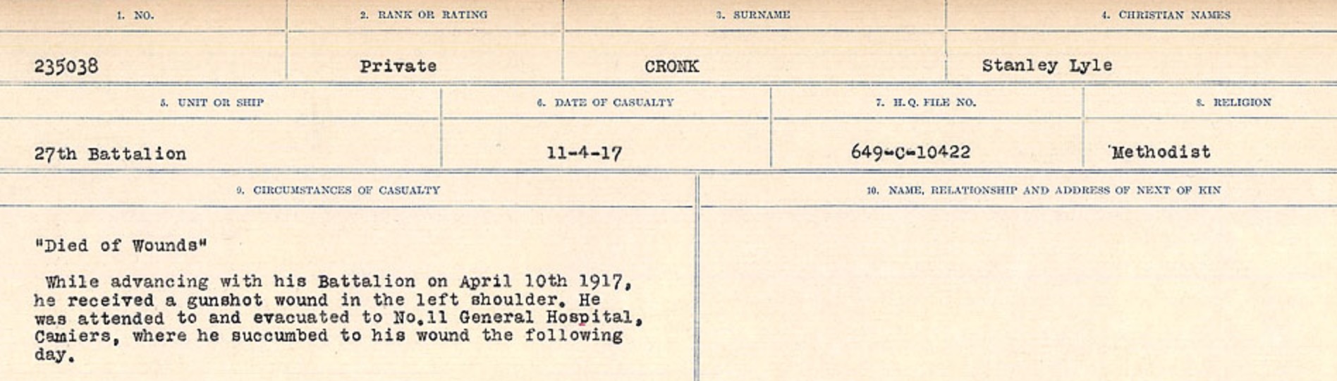 Son of Mr. and Mrs. Edw. Cronk, of Alameda, Saskatchewan.
