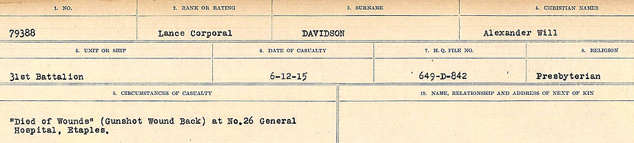 Digital gallery of Lance Corporal Alexander Will Davidson
