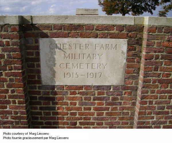 CHESTER FARM CEMETERY is located 4 Km south east of Ieper town centre, on the Vaartstraat a road leading from the Komenseweg connecting Ieper to Komen (N336).