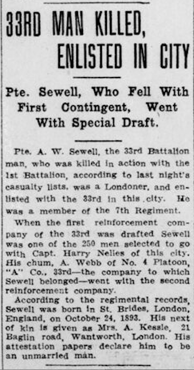 Private Arthur Walter Sewell