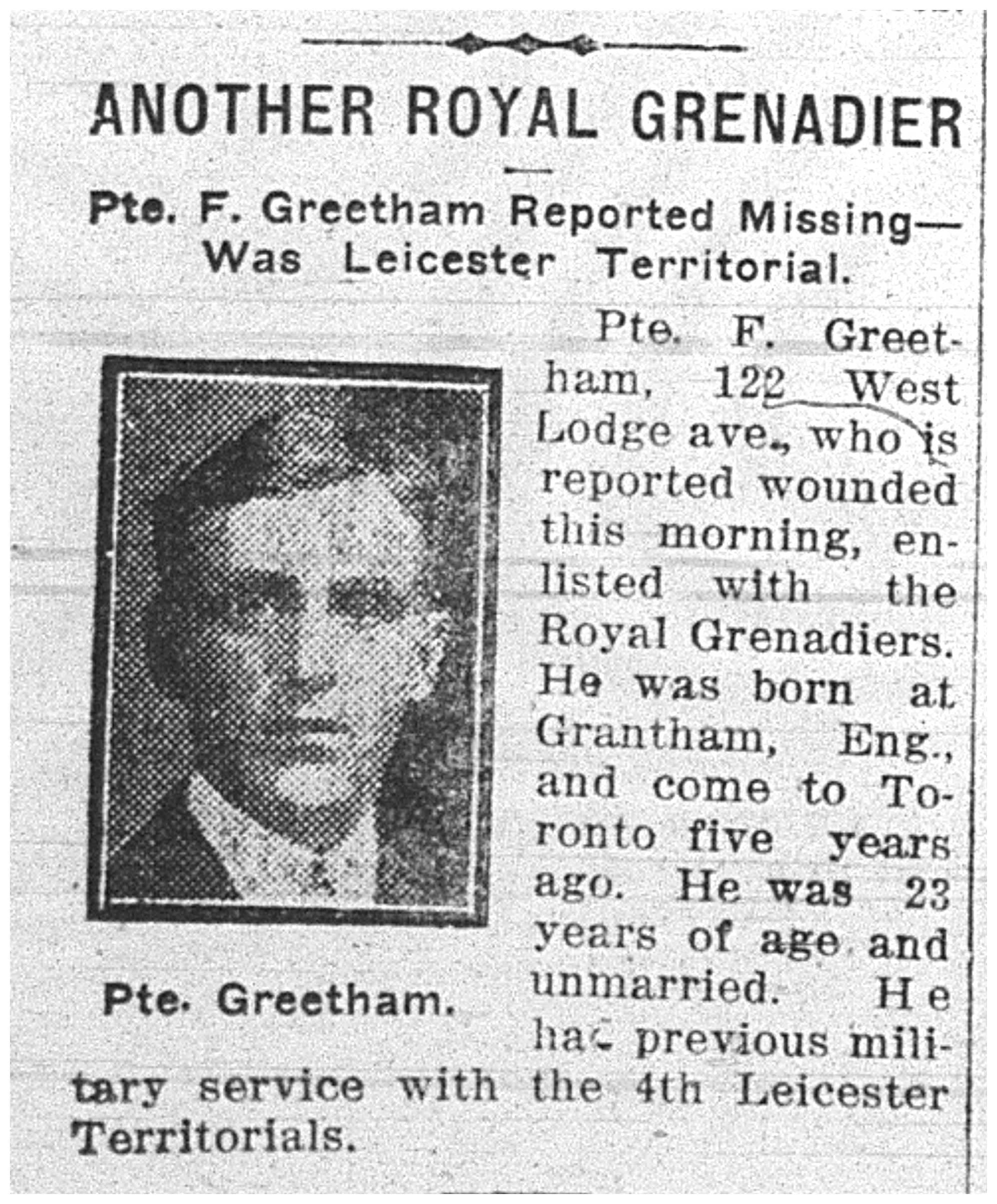 Digital gallery of Private Frank Greetham