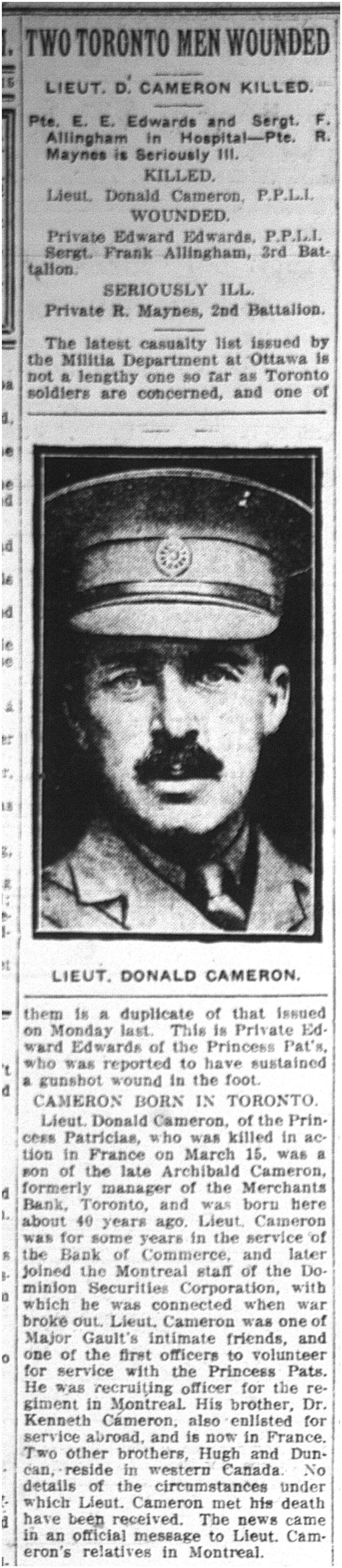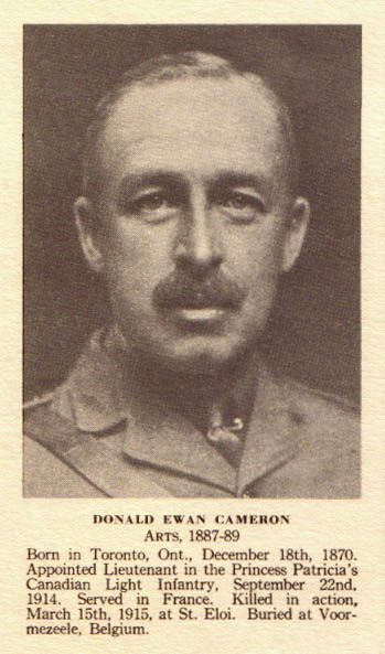 Son of Archibald and Agnes Margaret Cameron (nee Barwick), of Montreal, Quebec. Brother of Duncan and Kenneth.