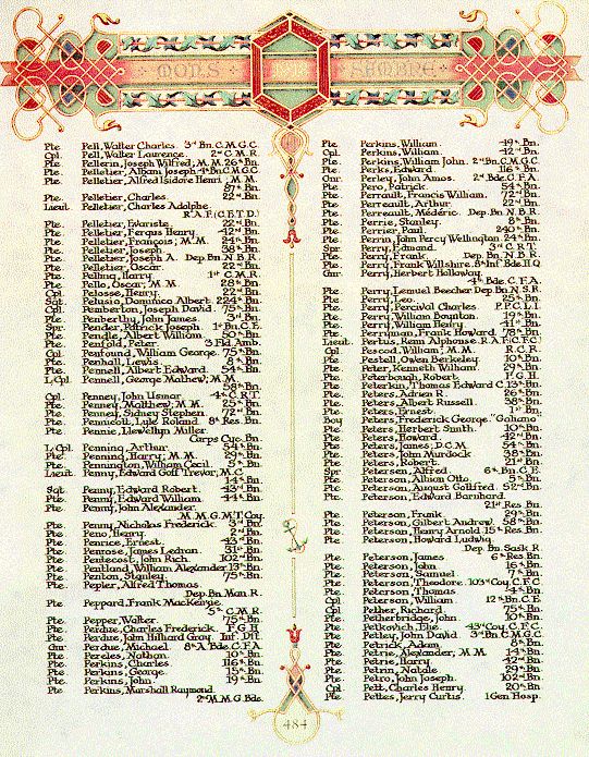 Page 484 of the First World War Book of Remembrance.