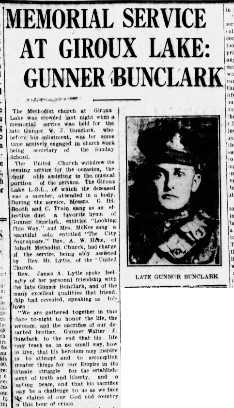 Son of John and Mary Jane Bunclark, of Giroux Lake, Ontario.