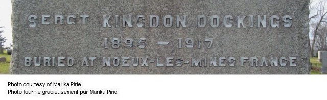 Son of John and Emma Dockings, of 391, Concession St., Hamilton, Ontario.