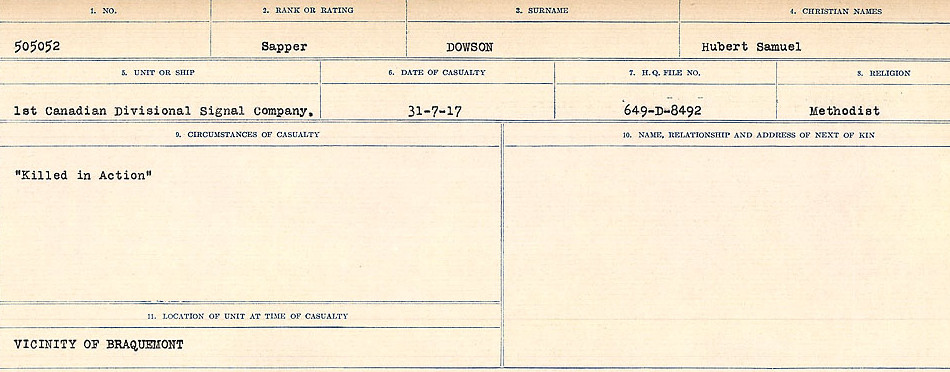 Son of Samuel T. and Margaret E. Dowson, of Perth, Ontario.