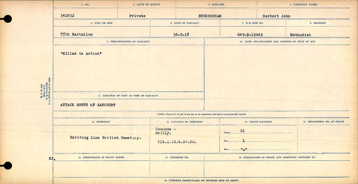 Digital gallery of Private Herbert John Buckingham