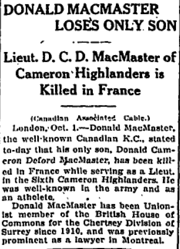 Son of Ella Virginia Deford Macmaster, of London, and Sir Donald Macmaster, K.C., M.P. Native of Montreal, Quebec.