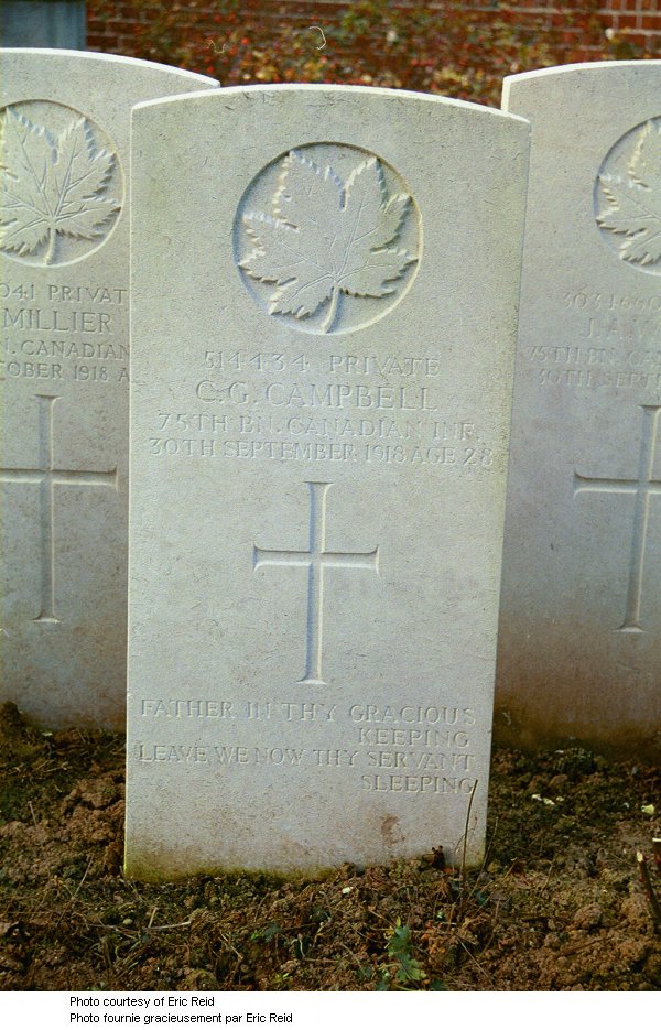Tilloy was captured by the Canadian Corps about the 1st October, 1918, in the face of strong opposition, and the cemetery was made by their Burial Officer on the 13th October. It is enclosed by a brick wall, and sheltered from the road by a row of willows; and a maple tree is planted at the South-East corner.